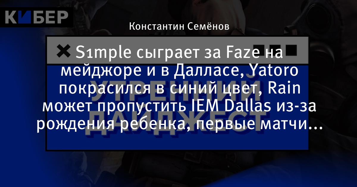 S1mple сыграет за Faze на мейджоре и в Далласе, Yatoro покрасился в синий цвет, Rain может пропустить IEM Dallas из-за рождения ребенка, первые матчи мейджора в Остине и другие новости утра