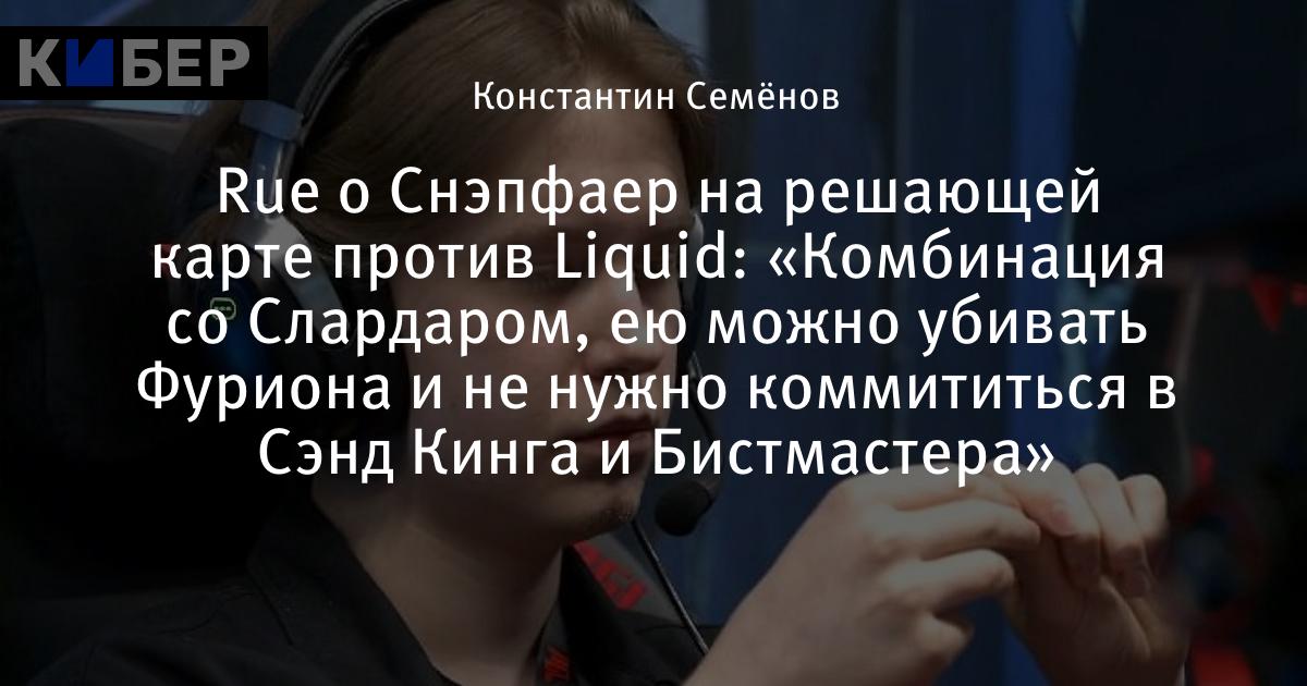 Rue о Снэпфаер на решающей карте против Liquid: «Комбинация со Слардаром, ею можно убивать Фуриона и не нужно коммититься в Сэнд Кинга и Бистмастера»