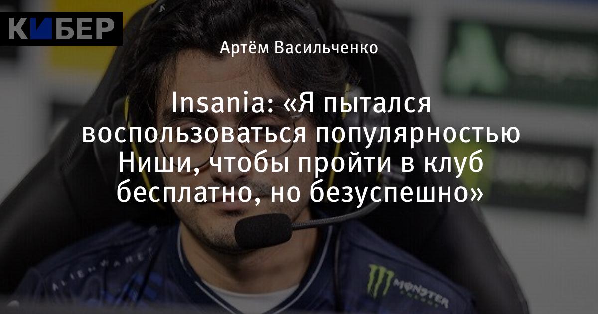 Insania: «Я пытался воспользоваться популярностью Ниши, чтобы пройти в клуб бесплатно, но безуспешно»