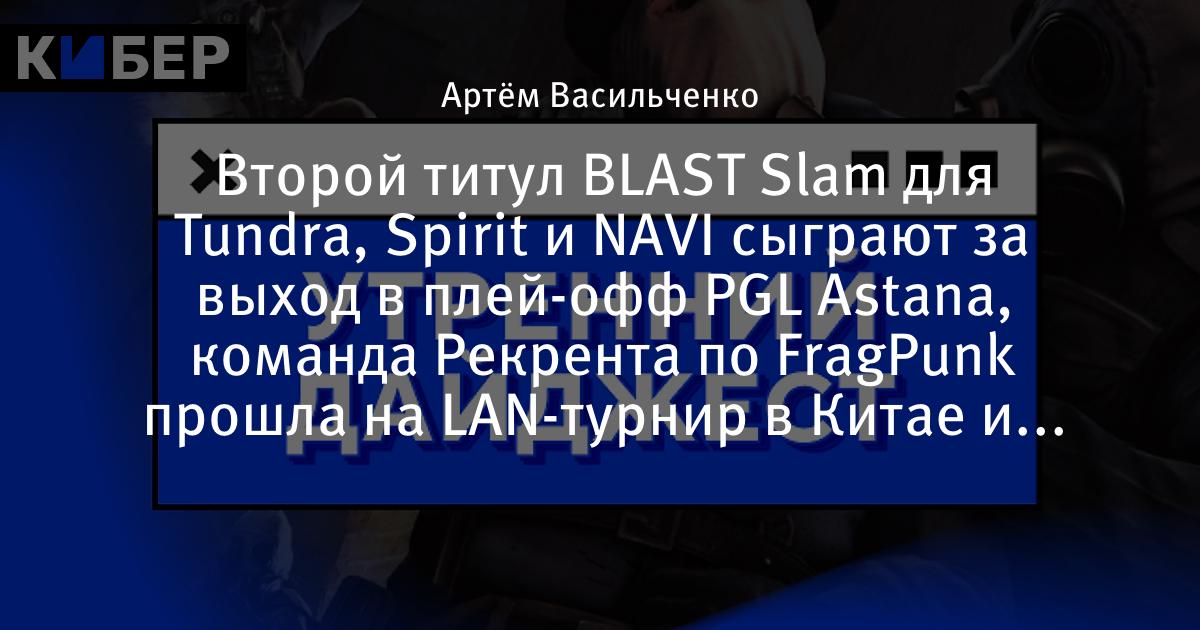 Второй титул BLAST Slam для Tundra, Spirit и NAVI сыграют за выход в плей-офф PGL Astana, команда Рекрента по FragPunk прошла на LAN-турнир в Китае и другие новости утра