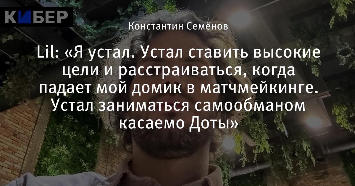 Lil: «Я устал. Устал ставить высокие цели и расстраиваться, когда падает мой домик в матчмейкинге. Устал заниматься самообманом касаемо Доты»