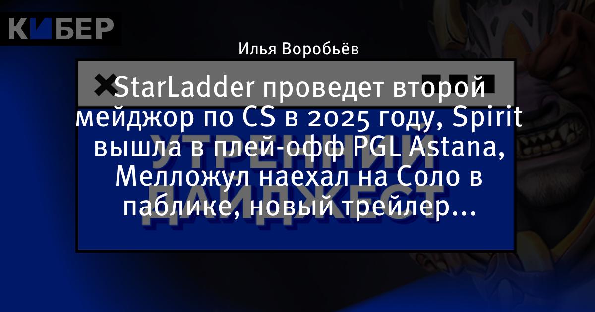 StarLadder проведет второй мейджор по CS в 2025 году, Spirit вышла в плей-офф PGL Astana, Мелложул наехал на Соло в паблике, новый трейлер «Формулы-1» с Брэдом Питтом и другие новости утра