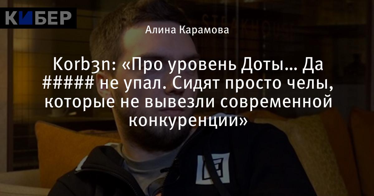 Korb3n: «Про уровень Доты… Да ##### не упал. Сидят просто челы, которые не вывезли современной конкуренции»