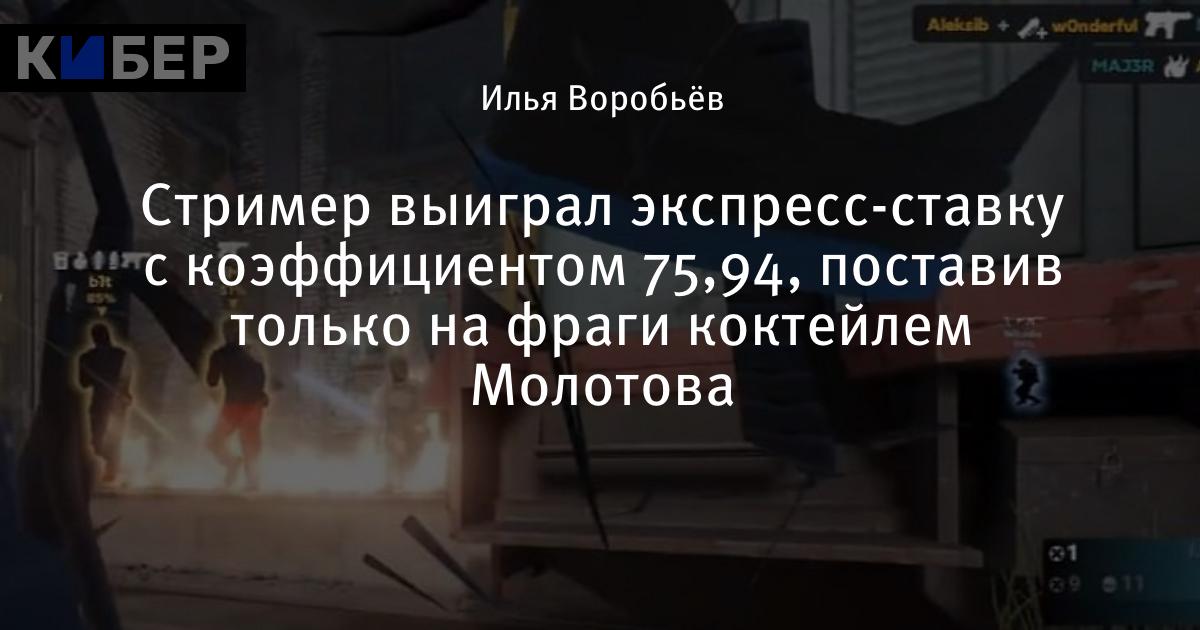 Стример выиграл экспресс-ставку с коэффициентом 75,94, поставив только на фраги коктейлем Молотова