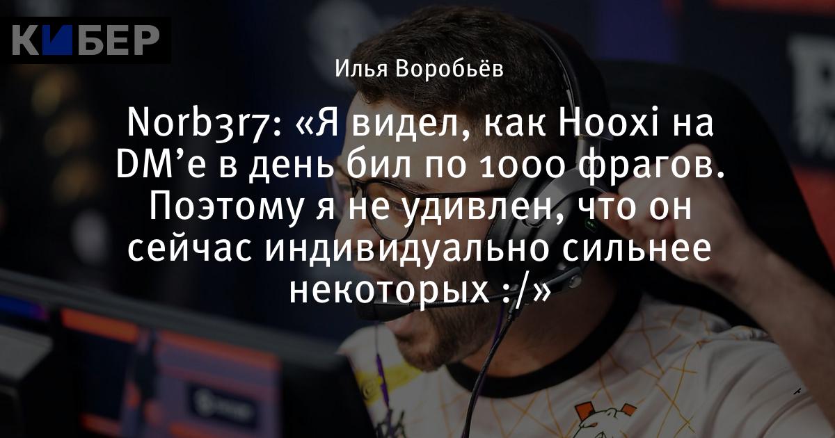 N0rb3r7: «Я видел, как Hooxi на DM’е в день бил по 1000 фрагов. Поэтому я не удивлен, что он сейчас индивидуально сильнее некоторых :/»