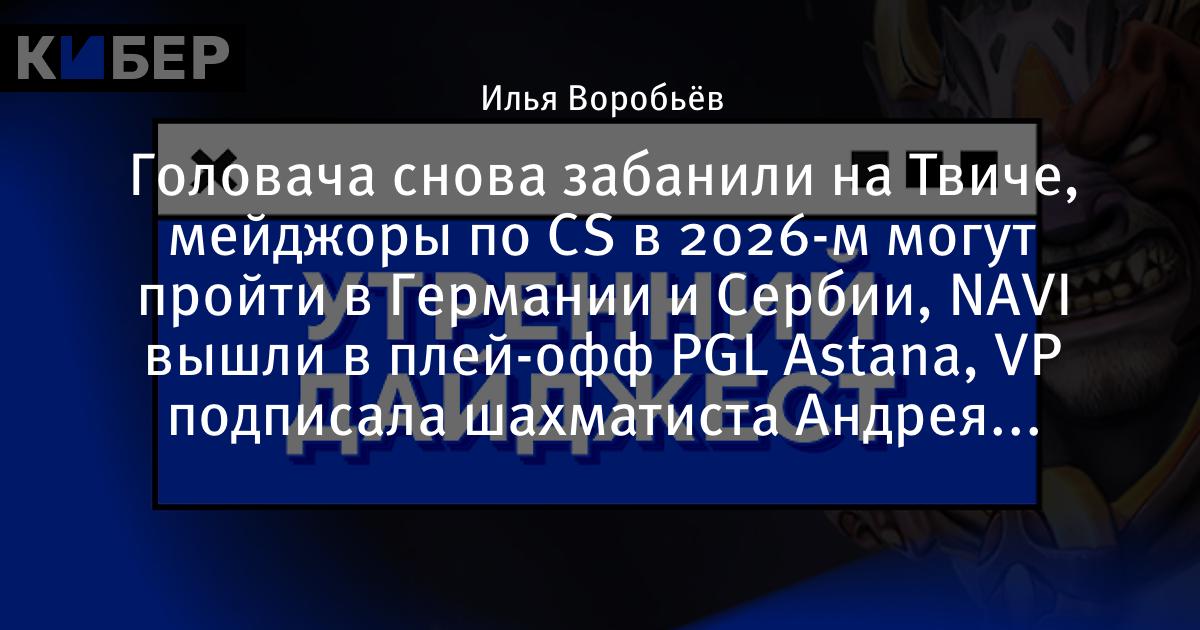Головача снова забанили на Твиче, мейджоры по CS в 2026-м могут пройти в Германии и Сербии, NAVI вышли в плей-офф PGL Astana, VP подписала шахматиста Андрея Есипенко и другие новости утра