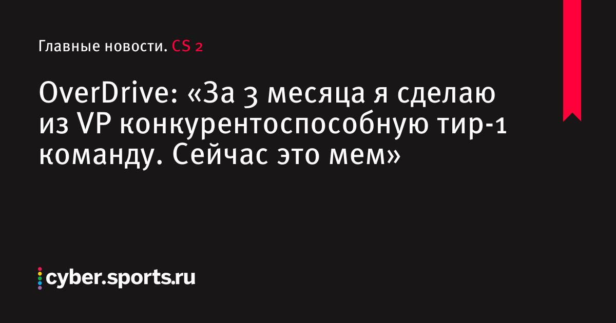 OverDrive: «За 3 месяца я сделаю из VP конкурентоспособную тир-1 команду. Сейчас это мем»