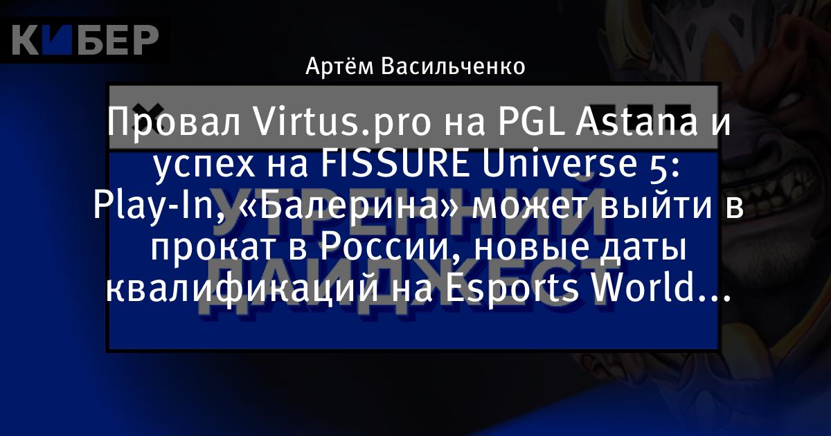 Провал Virtus.pro на PGL Astana и успех на FISSURE Universe 5: Play-In, «Балерина» может выйти в прокат в России, новые даты квалификаций на Esports World Cup и другие новости утра