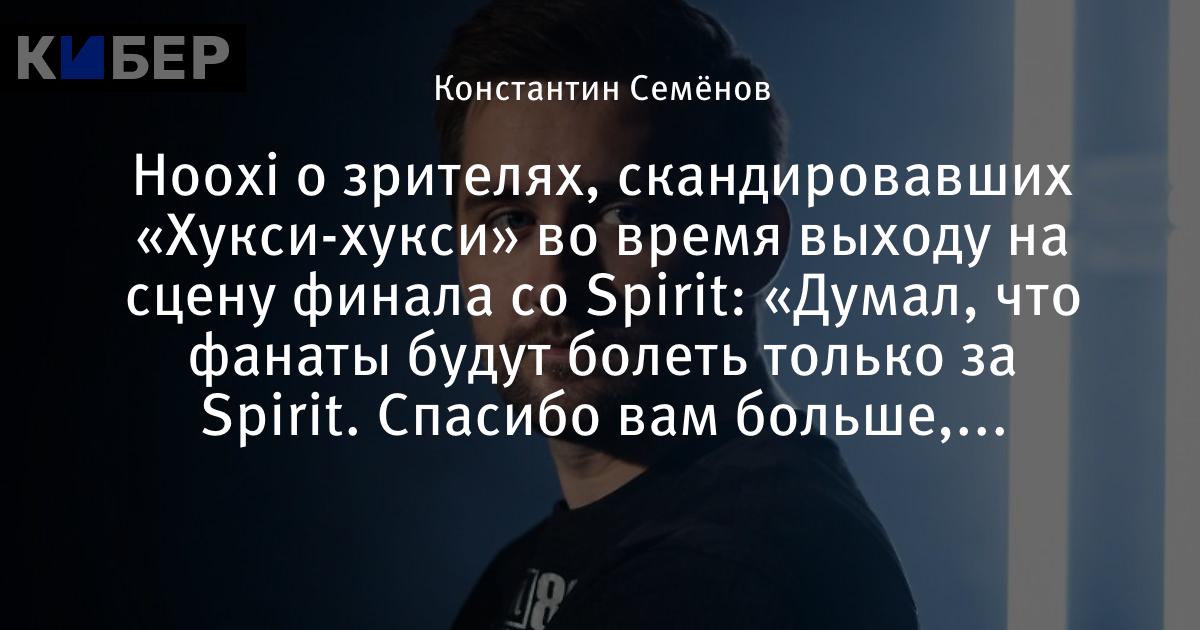Hooxi о зрителях, скандировавших «Хукси-хукси» во время выходу на сцену финала со Spirit: «Думал, что фанаты будут болеть только за Spirit. Спасибо вам больше, ребята»