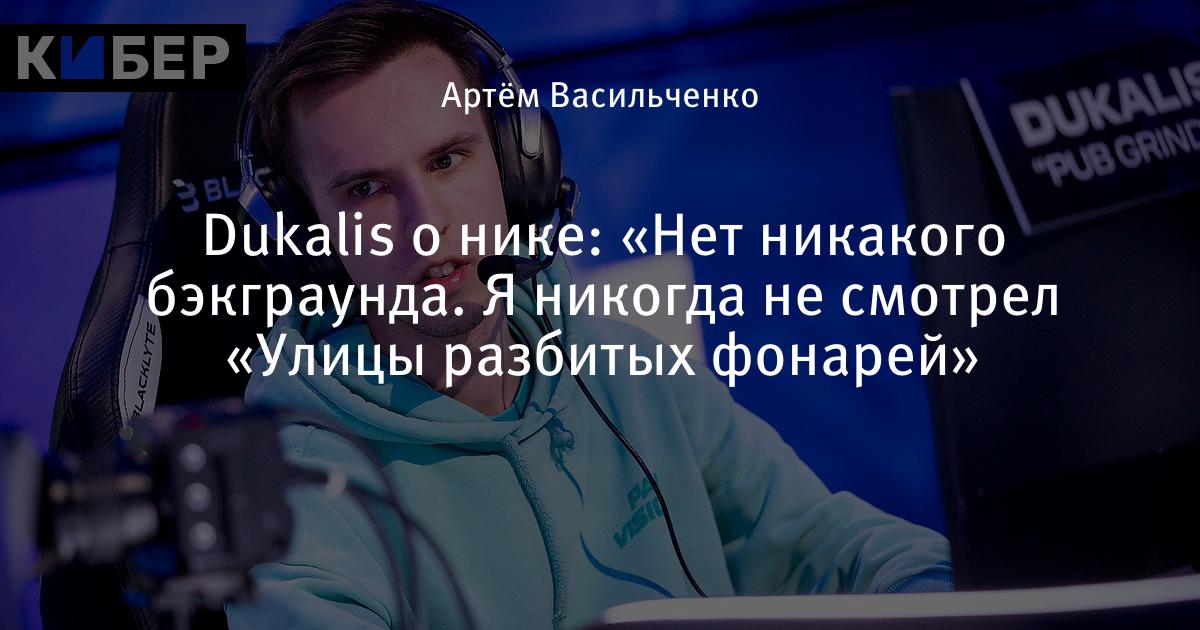 Нет никакого бэкграунда. Я никогда не смотрел «Улицы разбитых фонарей». Я даже думал после предыдущего сезона поменять ник и оставить просто 4 буквы – Duka. Но как-то не дошли руки. А сейчас как будто уже и смысла нет», – признался Андрей «Dukalis» Куропаткин в интервью Руслану Керимову, руководителю Доты на Кибере.