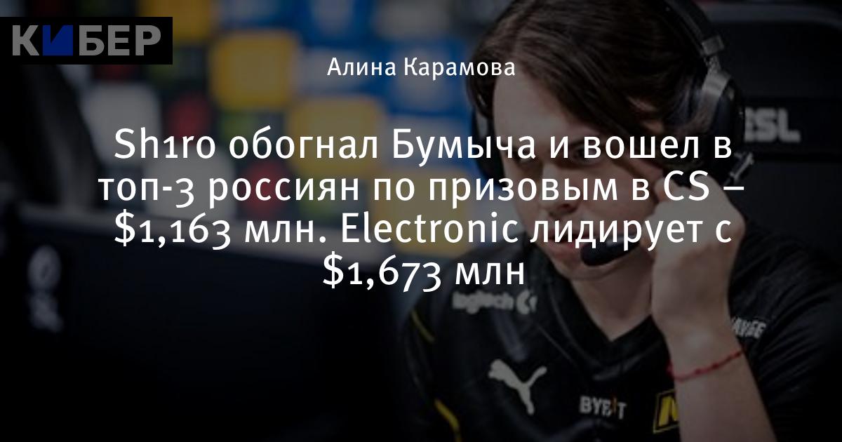 Sh1ro обогнал Бумыча и вошел в топ-3 россиян по призовым в CS – $1,163 млн. Electronic лидирует с $1,673 млн