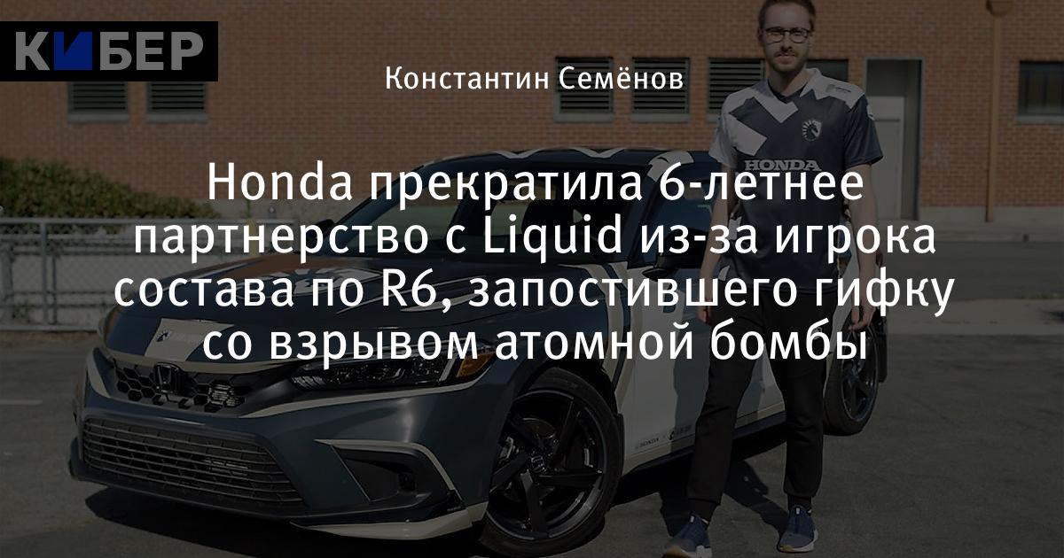 Honda прекратила 6-летнее партнерство с Liquid из-за игрока состава по R6, запостившего гифку со взрывом атомной бомбы