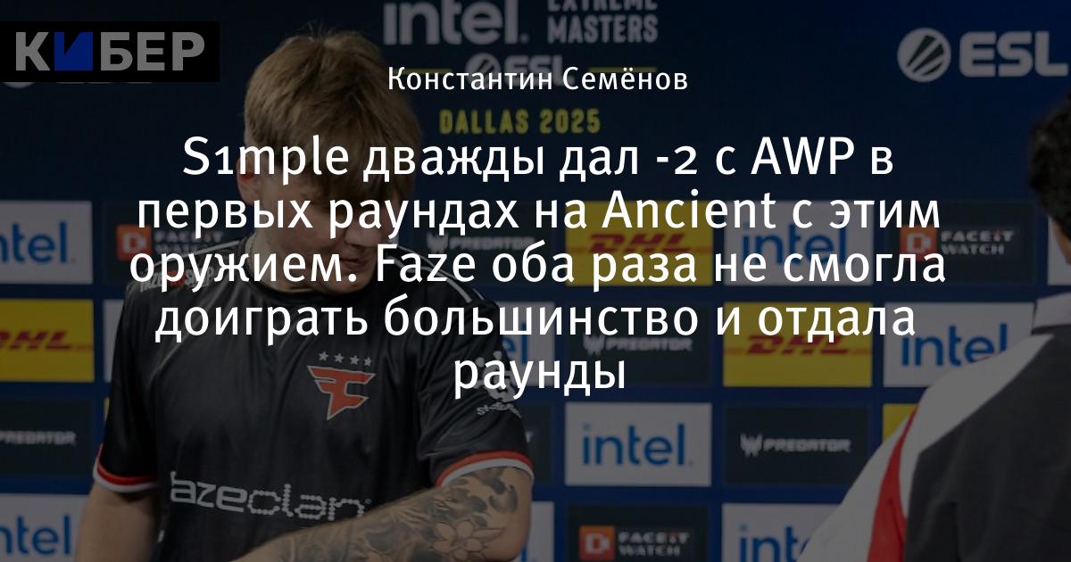 S1mple дважды дал -2 с AWP в первых раундах на Ancient с этим оружием. Faze оба раза не смогла доиграть большинство и отдала раунды