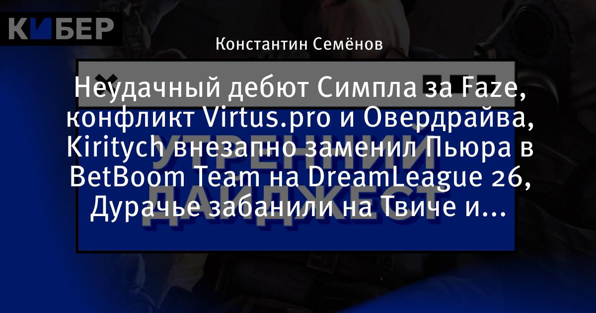 Неудачный дебют Симпла за Faze, конфликт Virtus.pro и Овердрайва, Kiritych внезапно заменил Пьюра в BetBoom Team на DreamLeague 26, Дурачье забанили на Твиче и другие новости утра