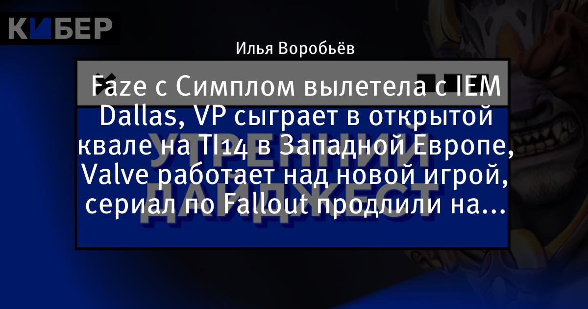 Faze с Симплом вылетела с IEM Dallas, VP сыграет в открытой квале на TI14 в Западной Европе, Valve работает над новой игрой, сериал по Fallout продлили на третий сезон и другие новости утра