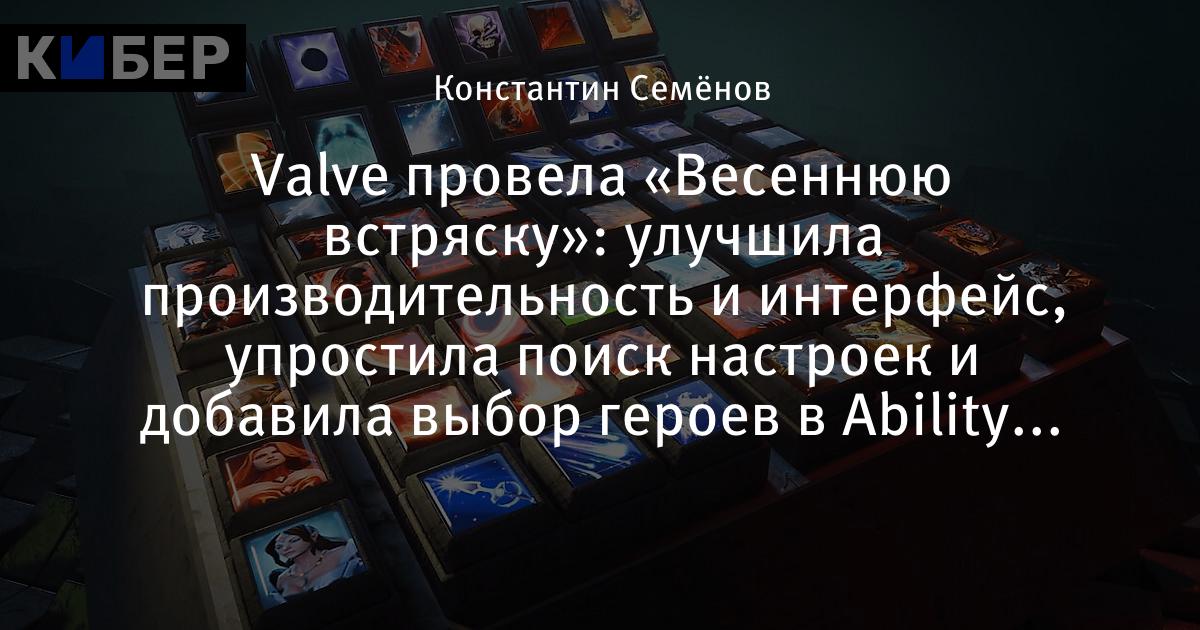 🎄 Valve провела «Весеннюю встряску»: улучшила производительность и интерфейс, упростила поиск настроек и добавила выбор героев в Ability Draft в Доте