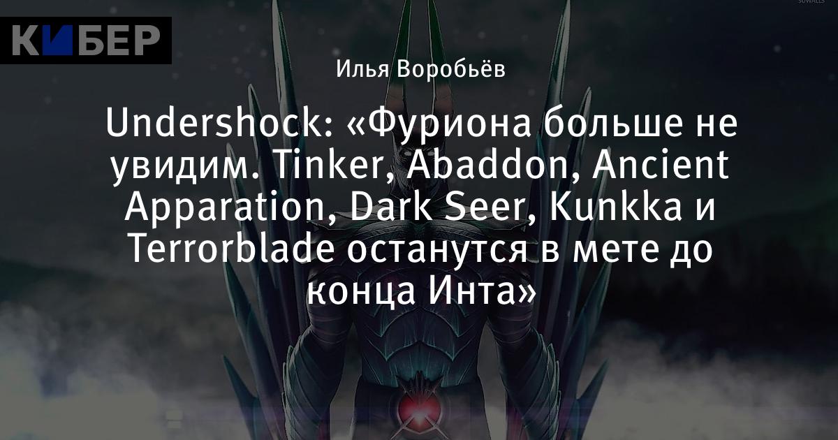 Undershock: «Фуриона больше не увидим. Tinker, Abaddon, Ancient Apparation, Dark Seer, Kunkka и Terrorblade останутся в мете до конца Инта»