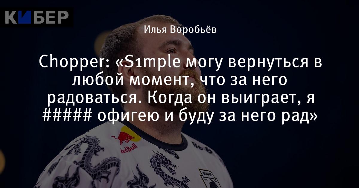 Chopper: «S1mple могу вернуться в любой момент, что за него радоваться. Когда он выиграет, я ##### офигею и буду за него рад»