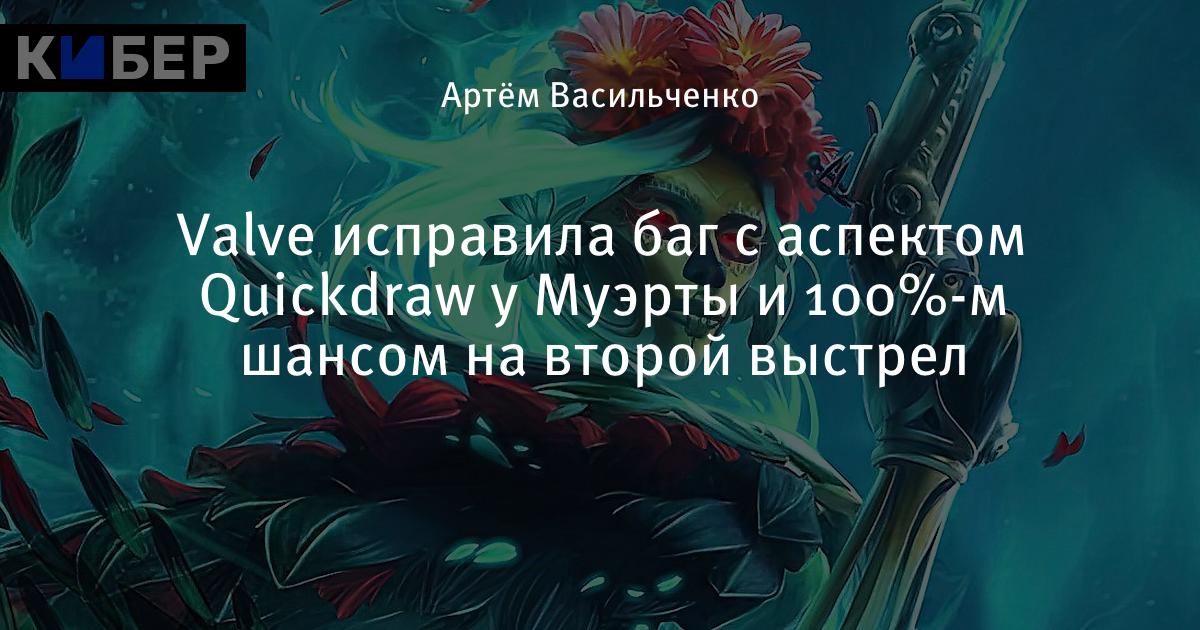 Valve выпустила небольшое обновление, в котором исправила баг с аспектом Quickdraw у Муэрты. Из-за этого персонаж постоянно совершал двойной выстрел со скилла Gunslinger.