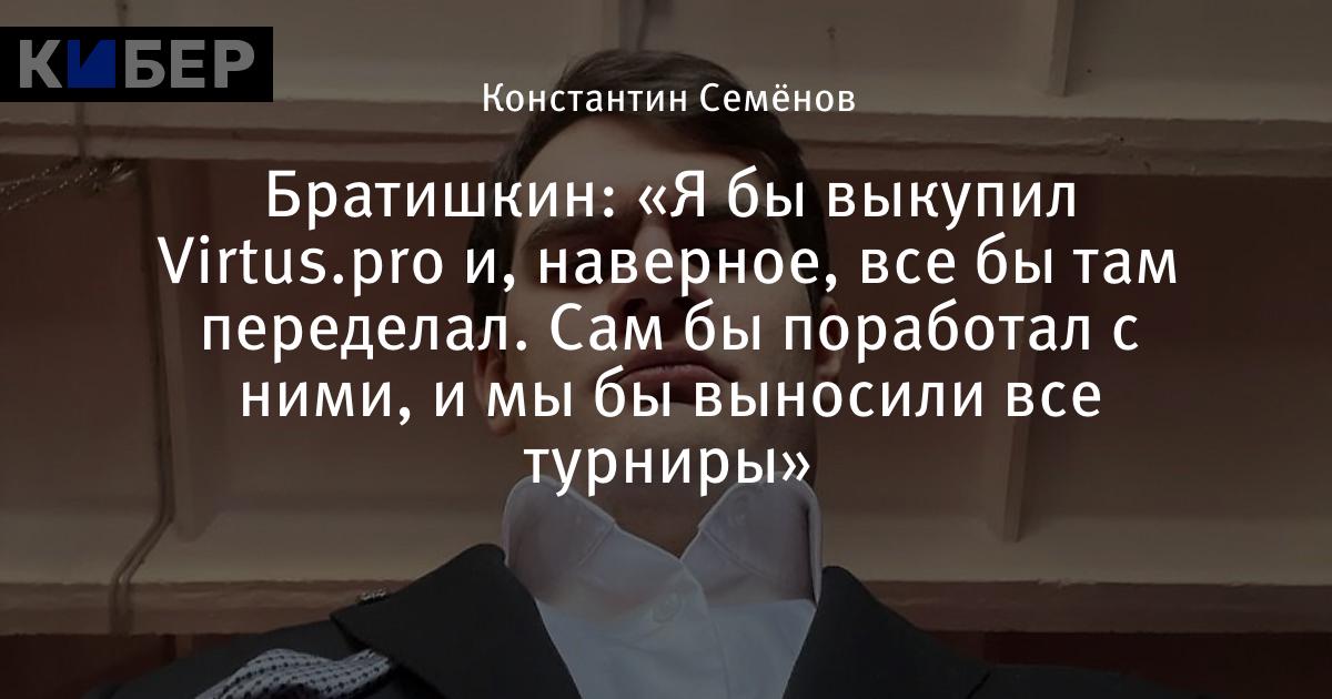 Братишкин: «Я бы выкупил Virtus.pro и, наверное, все бы там переделал. Сам бы поработал с ними, и мы бы выносили все турниры»