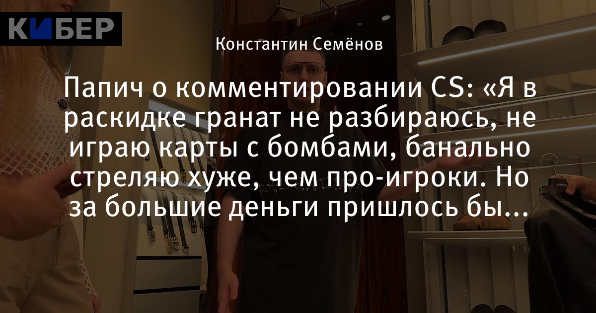 Папич о комментировании CS: «Я в раскидке гранат не разбираюсь, не играю карты с бомбами, банально стреляю хуже, чем про-игроки. Но за большие деньги пришлось бы согласиться»