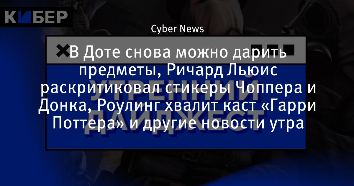 В Доте снова можно дарить предметы, Ричард Льюис раскритиковал стикеры Чоппера и Донка, Роулинг хвалит каст «Гарри Поттера» и другие новости утра