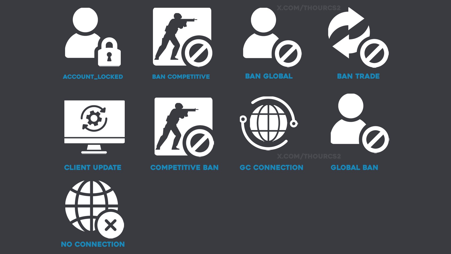 Всего в игру добавлено 9 иконок. Среди них – трейд-бан, обновление клиента, бан аккаунта, отсутствие соединения и другие уведомления.