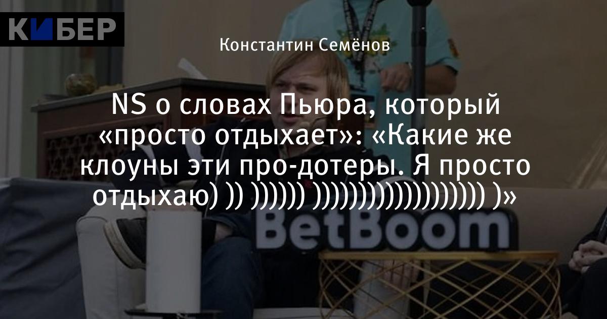 NS о словах Пьюра, который «просто отдыхает»: «Какие же клоуны эти про-дотеры. Я просто отдыхаю) )) )))))) ))))))))))))))))))) )»