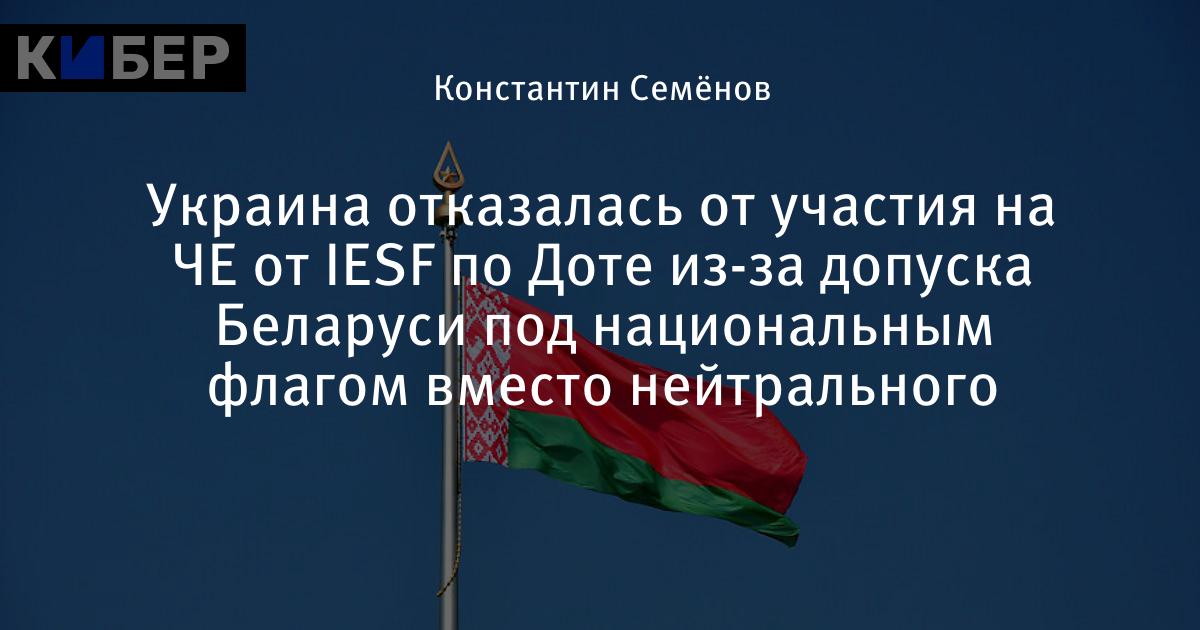 Согласно заявлению Федерации киберспорта Украины, Международная федерация киберспорта разрешила Беларуси выступать на турнирах IESF под своим национальным флагом вместо нейтрального статуса – это противоречит официальной позиции Федерации киберспорта Украины и Министерства молодежи и спорта Украины.