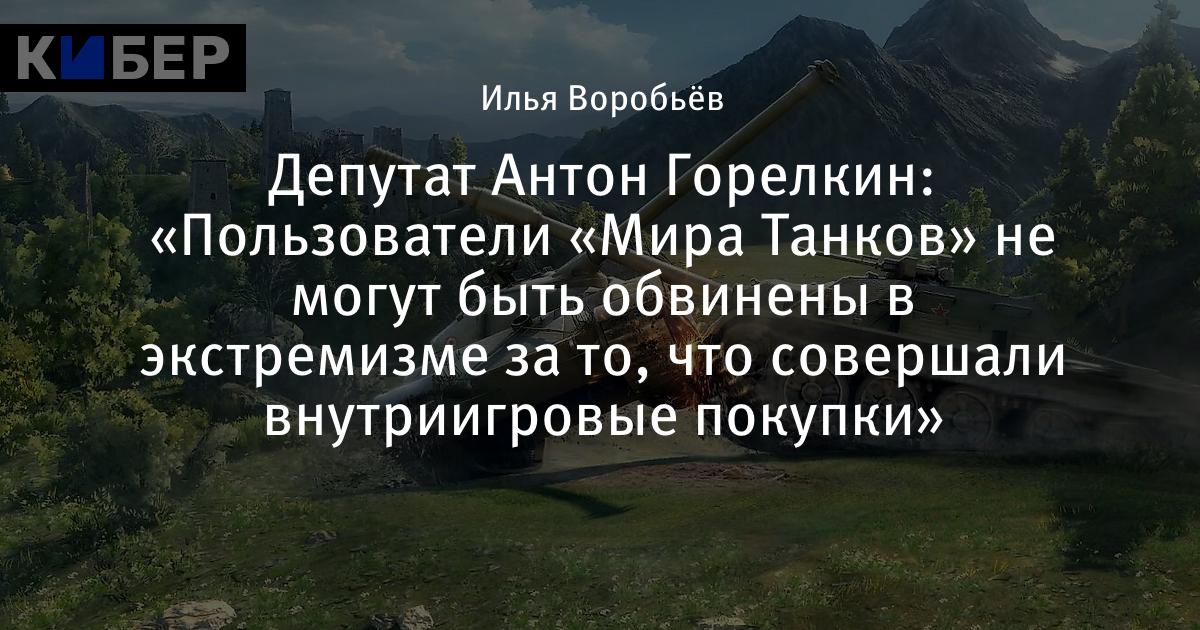 Депутат Антон Горелкин: «Пользователи «Мира Танков» не могут быть обвинены в экстремизме за то, что совершали внутриигровые покупки»