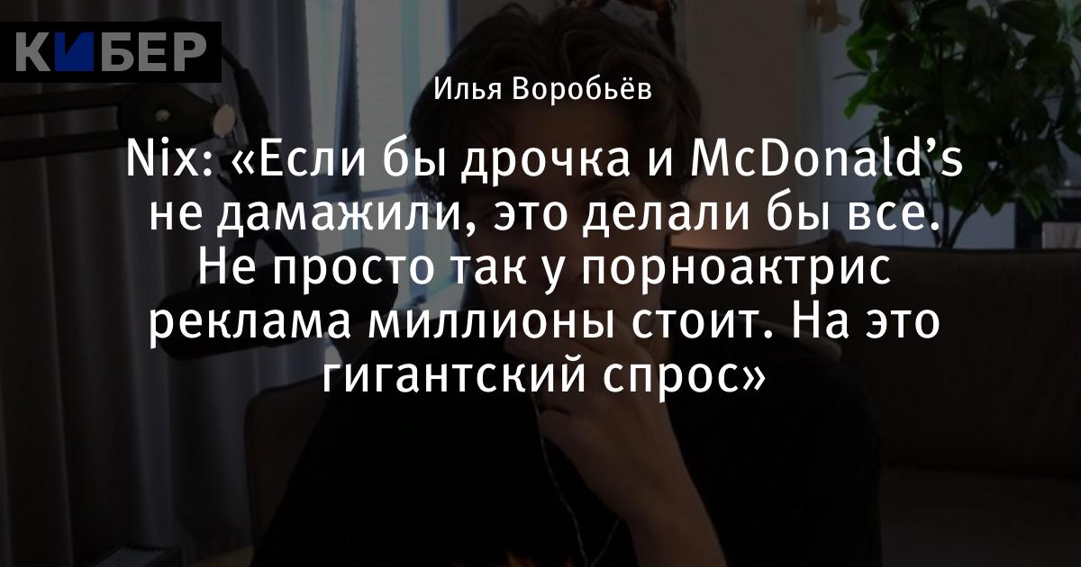 Nix: «Если бы дрочка и McDonald’s не дамажили, это делали бы все. Не просто так у порноактрис реклама миллионы стоит. На это гигантский спрос»
