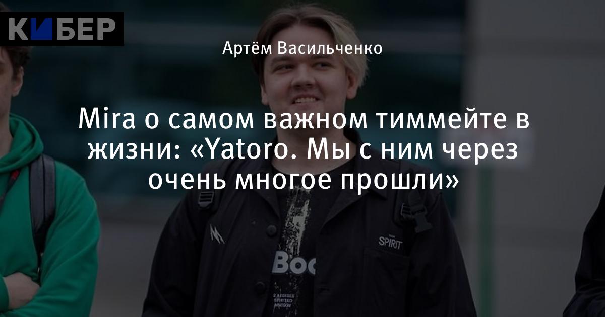 «[Какой друг или тиммейт был для тебя самым важным в жизни?] В жизни? Как человек, который на меня влиял? Yatoro, наверное. Мы с ним через очень многое прошли. Я у него очень многому научился. [Чему?] Всяким вещам в плане восприятия жизни. Его философии – простой и стоической», – поделился Мирослав «Mira» Колпаков.