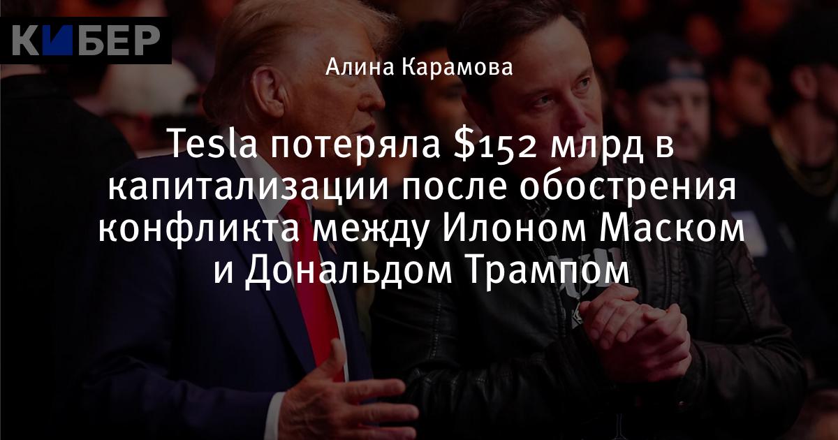 Tesla потеряла $152 млрд в капитализации после обострения конфликта между Илоном Маском и Дональдом Трампом