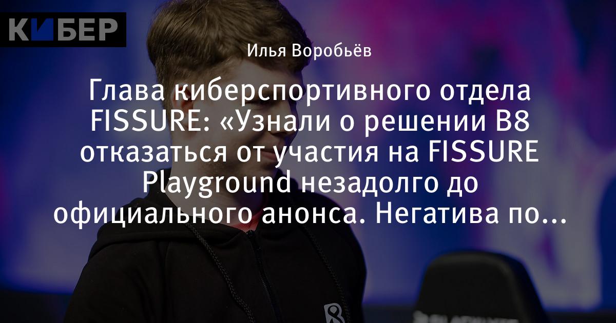 Глава киберспортивного отдела FISSURE: «Узнали о решении B8 отказаться от участия на FISSURE Playground незадолго до официального анонса. Негатива по этому от нас не было»