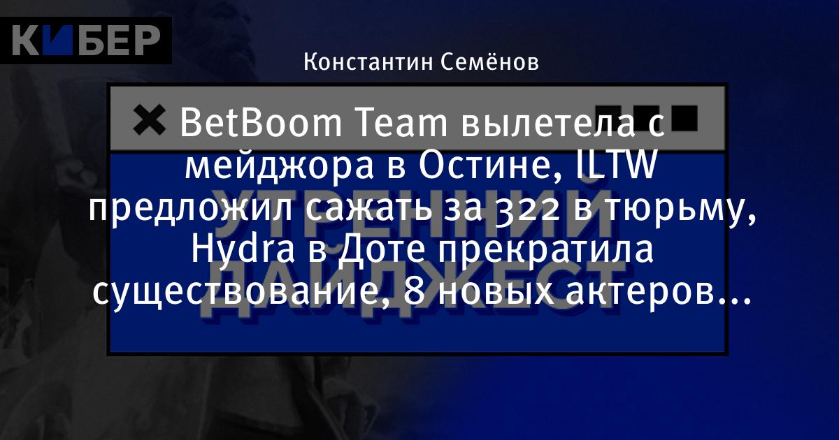 BetBoom Team вылетела с мейджора в Остине, ILTW предложил сажать за 322 в тюрьму, Hydra в Доте прекратила существование, 8 новых актеров сериала по «Гарри Поттеру» и другие новости утра