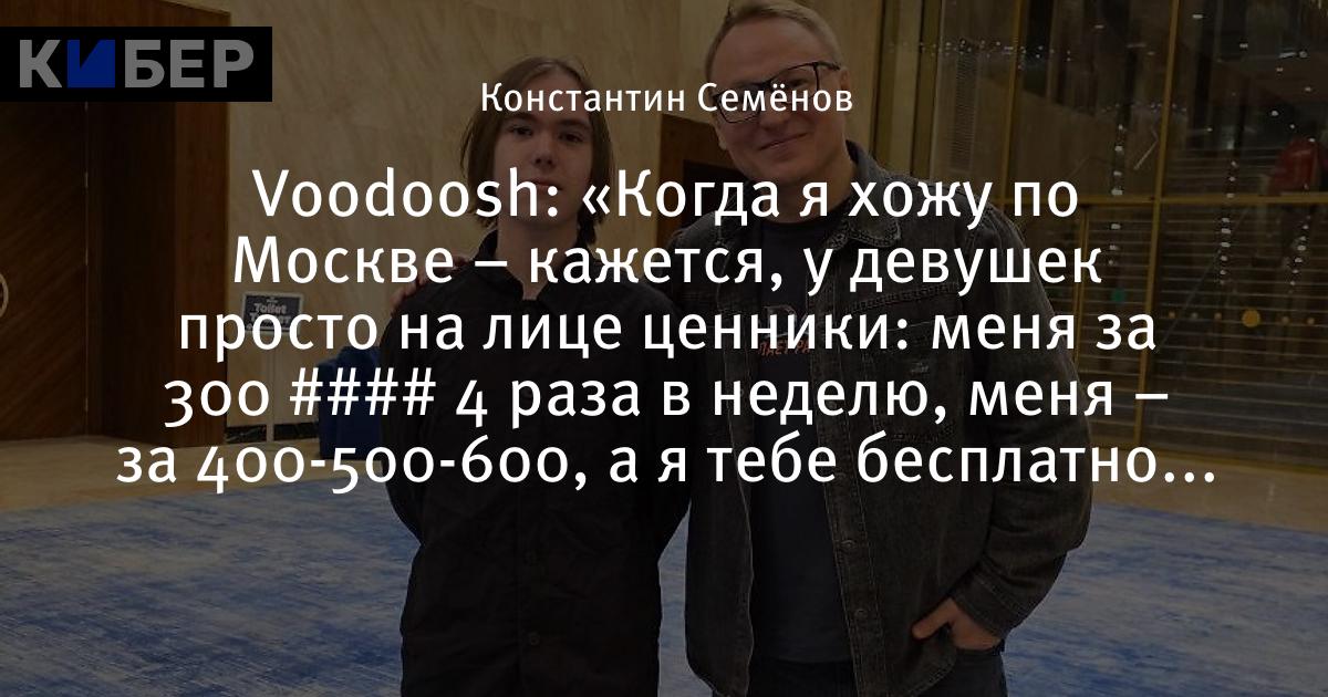 Voodoosh: «Когда я хожу по Москве – кажется, у девушек просто на лице ценники: меня за 300 #### 4 раза в неделю, меня – за 400-500-600, а я тебе бесплатно дам»