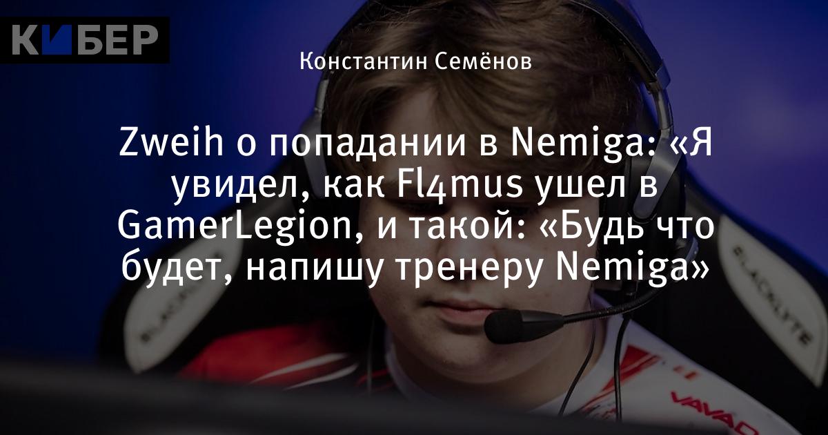 Zweih о попадании в Nemiga: «Я увидел, как Fl4mus ушел в GamerLegion, и такой: «Будь что будет, напишу тренеру Nemiga»