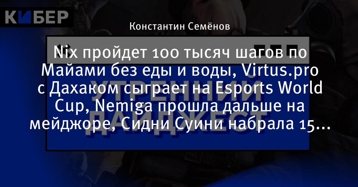 Nix пройдет 100 тысяч шагов по Майами без еды и воды, Virtus.pro с Дахаком сыграет на Esports World Cup, Nemiga прошла дальше на мейджоре, Сидни Суини набрала 15 килограмм и другие новости утра