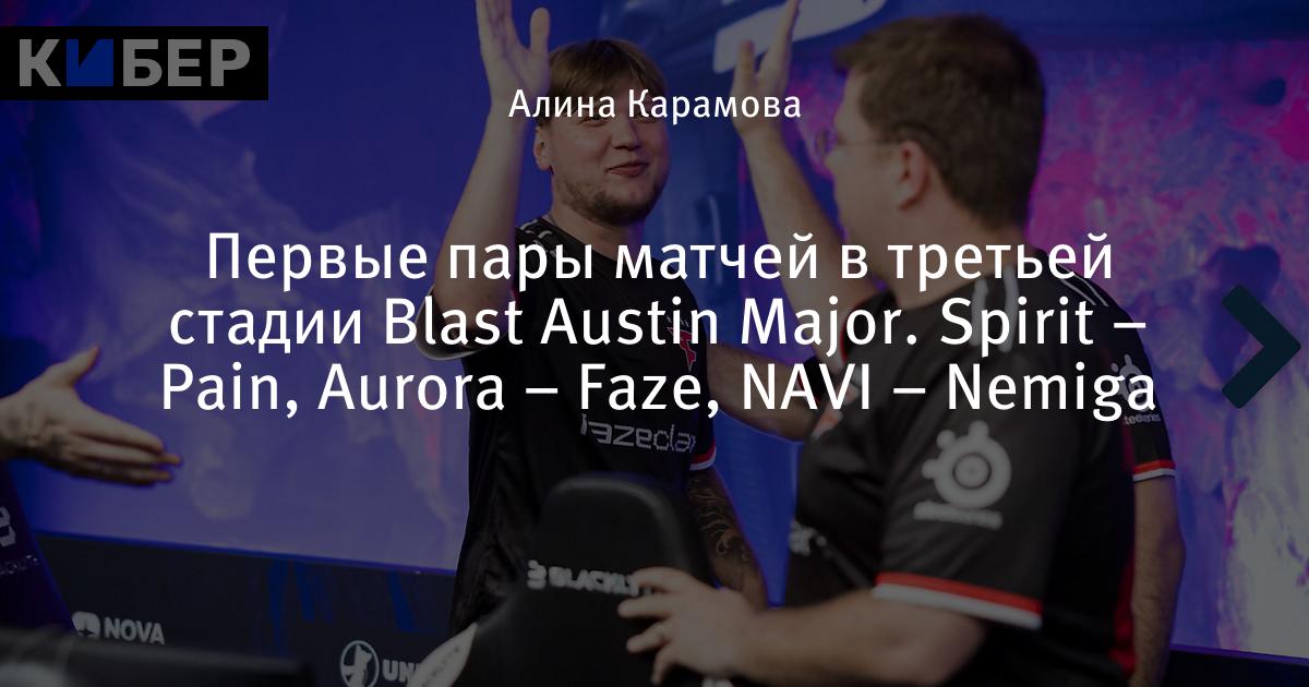 Первые пары матчей в третьей стадии Blast Austin Major. Spirit – Pain, Aurora – Faze, NAVI – Nemiga