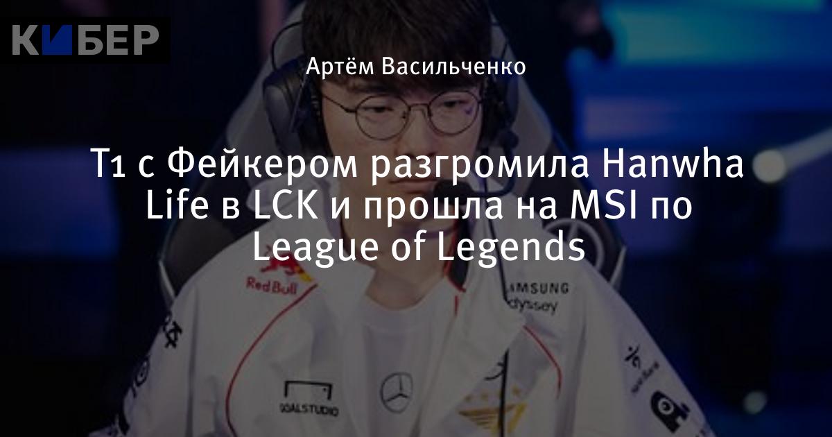 T1 с Фейкером разгромила Hanwha Life в LCK и прошла на MSI по League of Legends