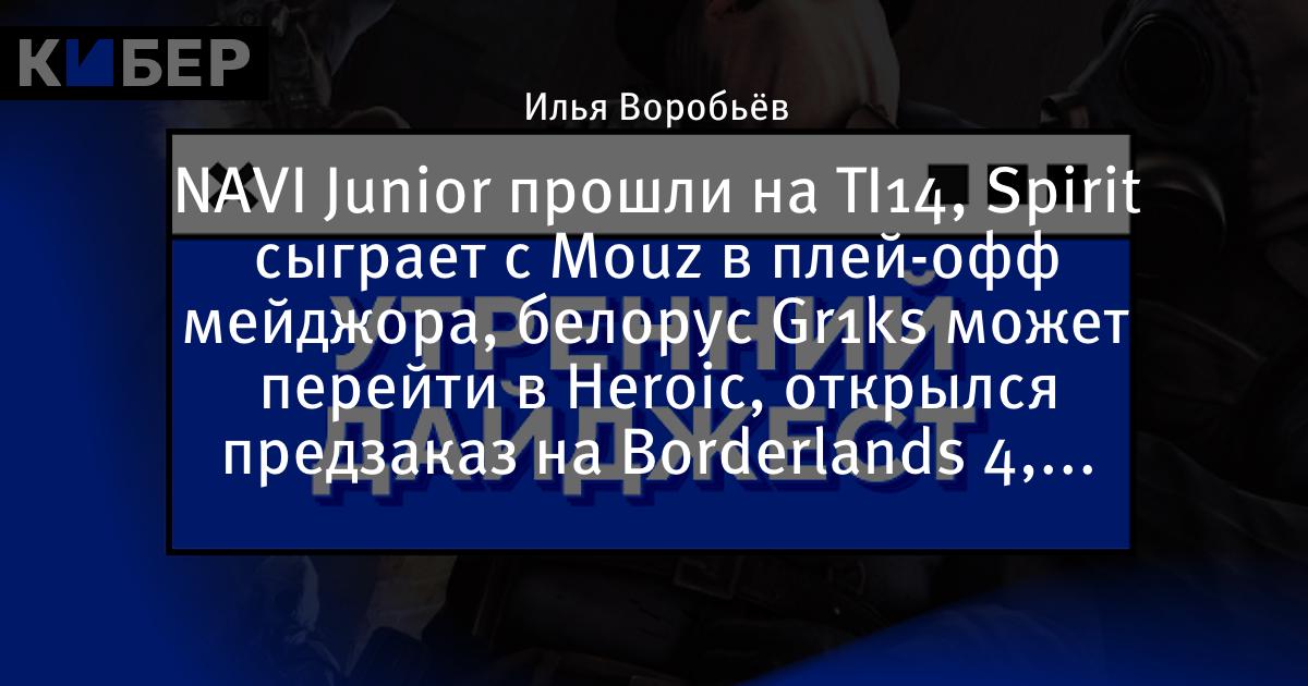 NAVI Junior прошли на TI14, Spirit сыграет с Mouz в плей-офф мейджора, белорус Gr1ks может перейти в Heroic, открылся предзаказ на Borderlands 4, MindsEye получила 43 балла на Metacritic и другие новости утра
