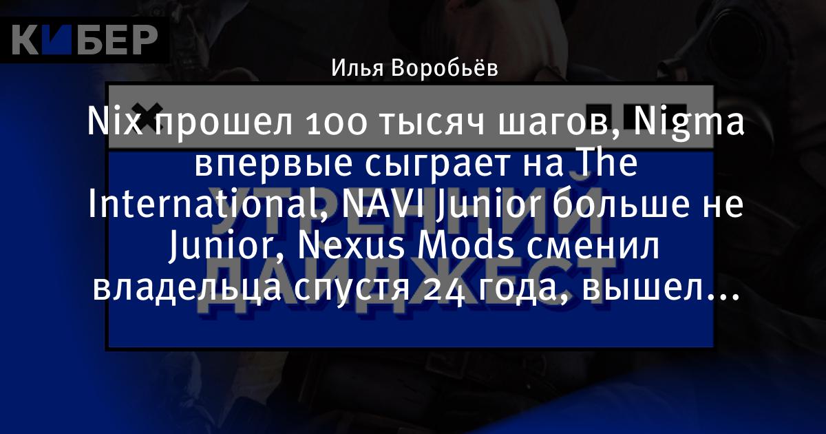 Nix прошел 100 тысяч шагов, Nigma впервые сыграет на The International, NAVI Junior больше не Junior, Nexus Mods сменил владельца спустя 24 года, вышел новый патч для inZOI и другие новости утра