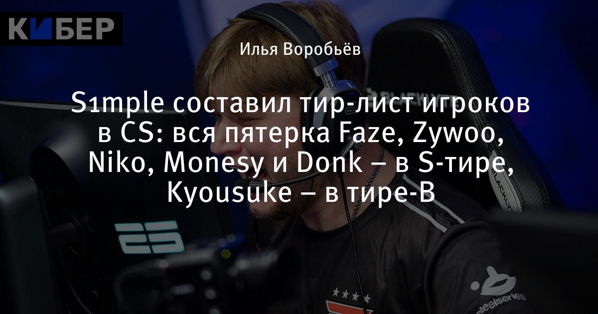 S1mple составил тир-лист игроков в CS: вся пятерка Faze, Zywoo, Niko, M0nesy и Donk – в S-тире, Kyousuke – в тире-B