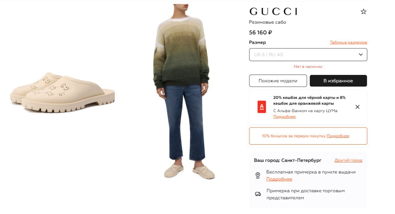 Магазин ЦУМ в России продает такие сабо от Gucci за 56 тысяч рублей.