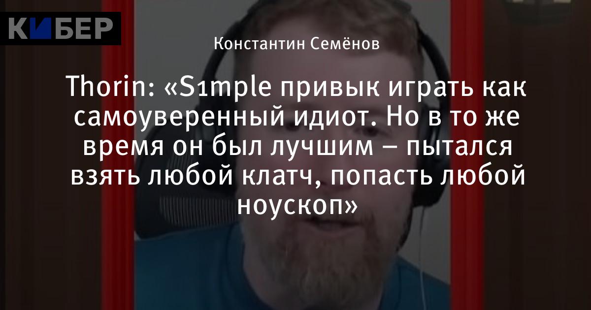 Thorin: «S1mple привык играть как самоуверенный идиот. Но в то же время он был лучшим – пытался взять любой клатч, попасть любой ноускоп»