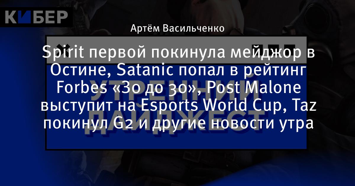 Spirit первой покинула мейджор в Остине, Satanic попал в рейтинг Forbes «З0 до 30», Post Malone выступит на Esports World Cup, Taz покинул G2 и другие новости утра