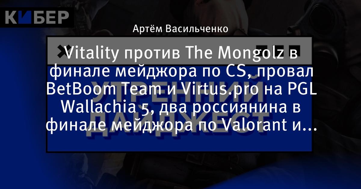 Vitality против The Mongolz в финале мейджора по CS, провал BetBoom Team и Virtus.pro на PGL Wallachia 5, два россиянина в финале мейджора по Valorant и другие новости утра