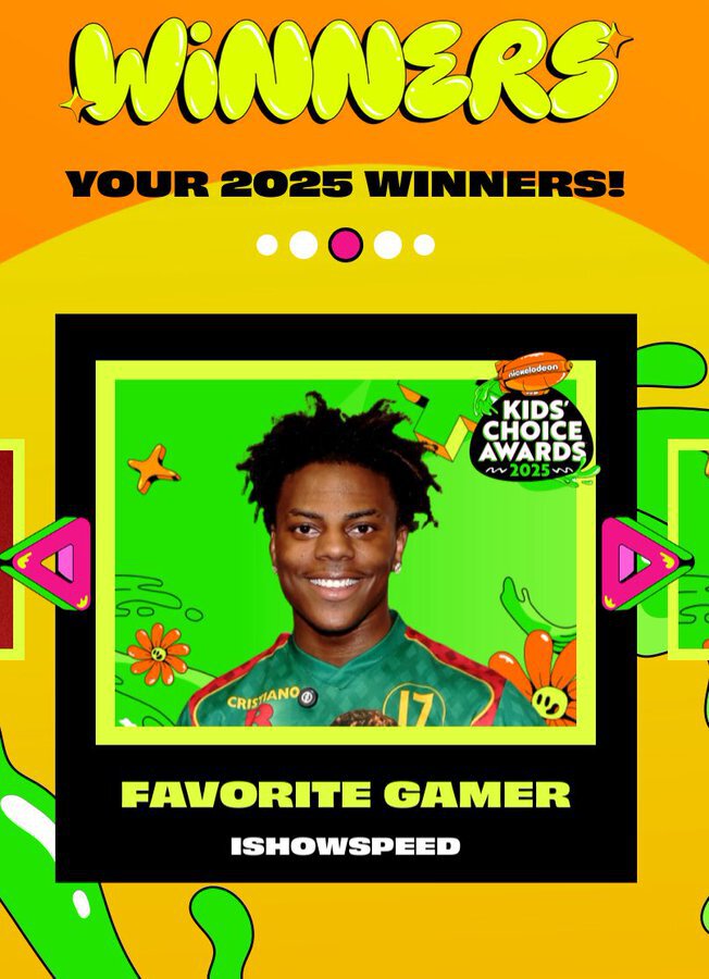 IShowSpeed победил в номинации «Лучший геймер» на Nickelodeon Kids’ Choice Awards 2025