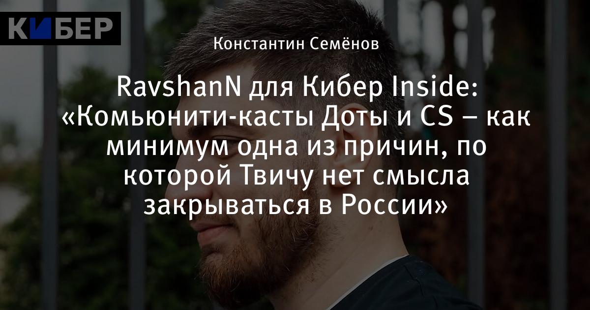 RavshanN для Кибер Inside: «Комьюнити-касты Доты и CS – как минимум одна из причин, по которой Твичу нет смысла закрываться в России»