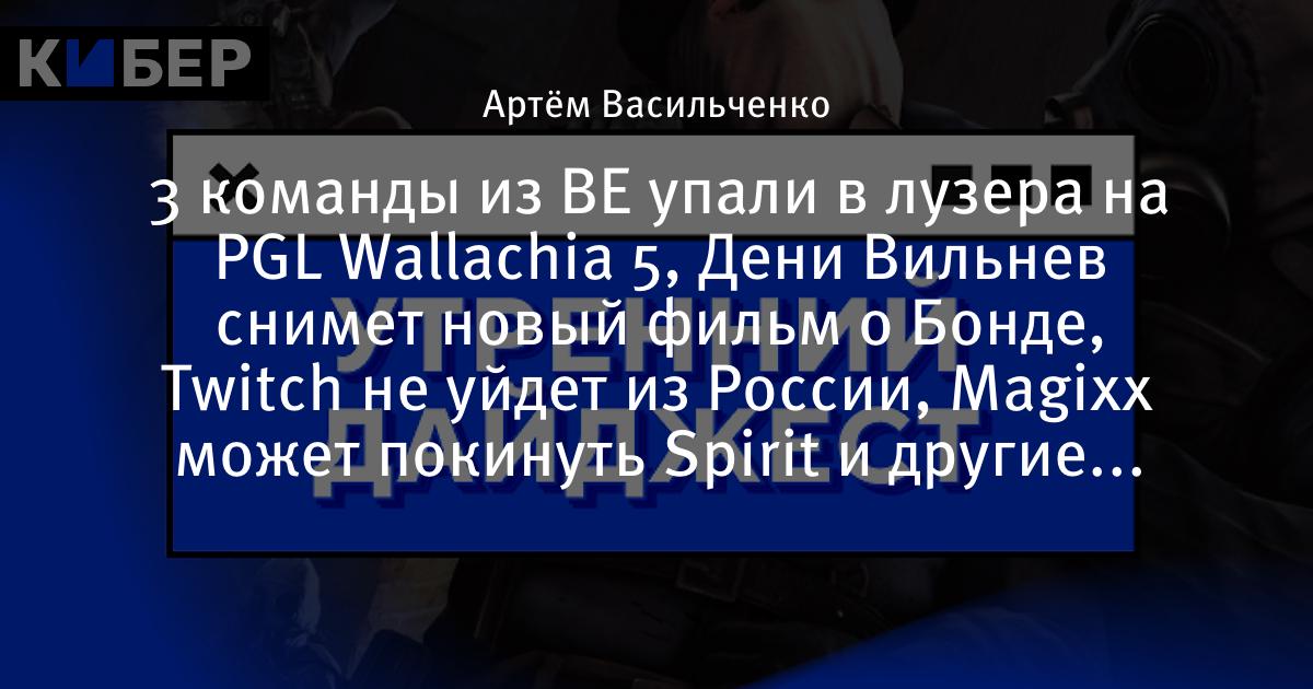 3 команды из ВЕ упали в лузера на PGL Wallachia 5, Дени Вильнев снимет новый фильм о Бонде, Twitch не уйдет из России, Magixx может покинуть Spirit и другие новости утра